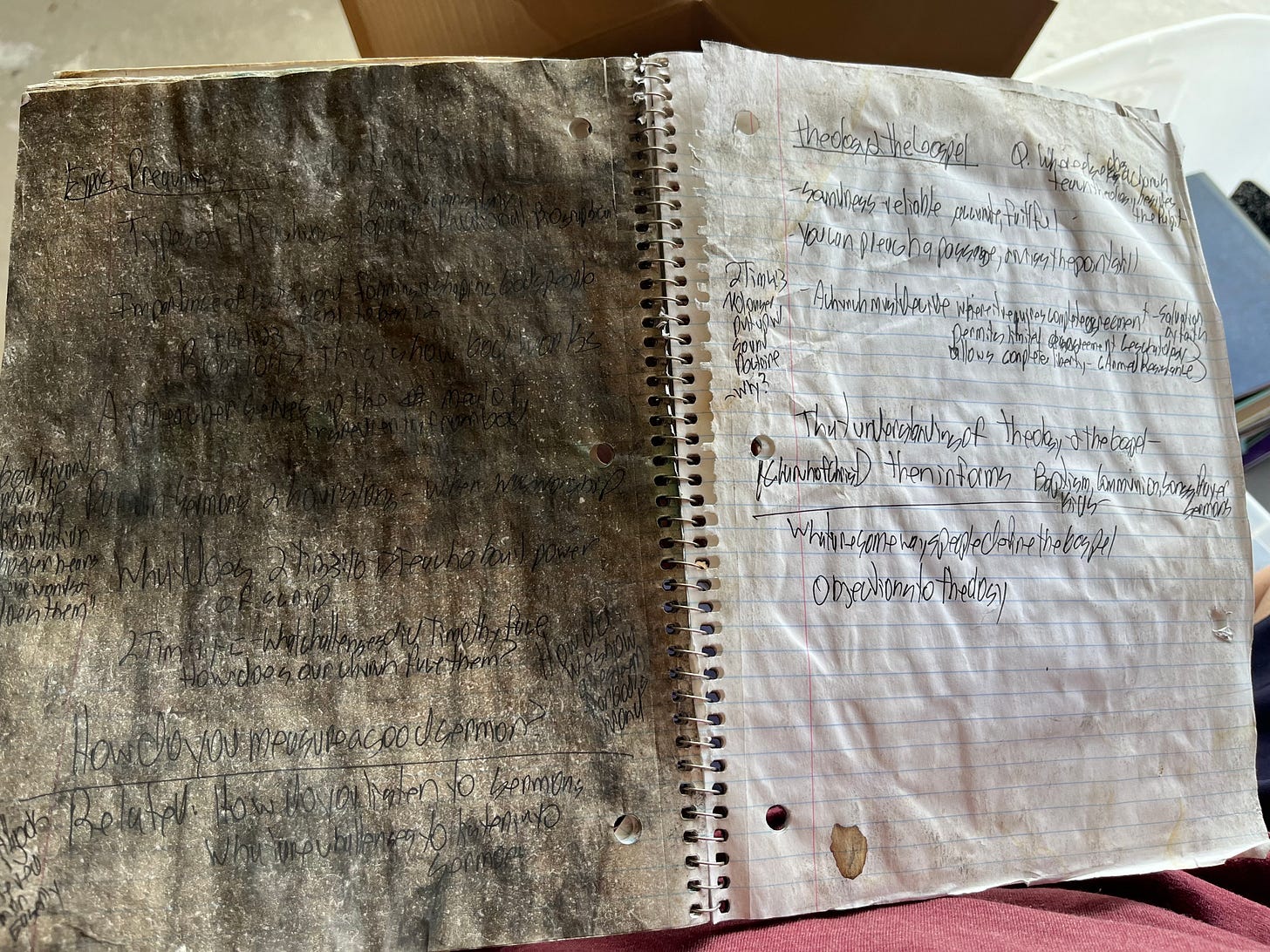 It's like a roller coaster ride through my life. The journal I started the week we shut down for Covid in 2020. A journal from the month after Sara and I got married and started at a church in Fort Cobb. The prayers I wrote after the church voted to fire me and it failed. Years of thoughts and study. But one that really caught my attention is the one with the black page you see below.