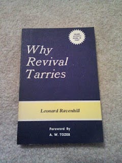 The blue and yellow colors of the book cover are what first caught my attention in the thrift store. Then the title had the word “revival” in it. It was an author I had never heard of, but his name was spelled out boldly across the spine. RAVENHILL. I soon found out the author was Leonard Ravenhill, and it was his classic book called "Why Revival Tarries “